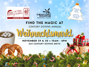 Get into the festive spirit at our Traditional Weihnachtsmarkt! Join us Saturday, November 29th, and Sunday, November 30th, 2025, from 10:00 AM to 4:00 PM in the barns at Century Downs.