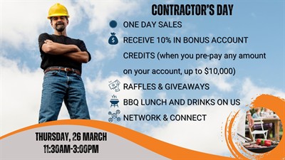 On March 26, we have our annual Contractor Day. This isn't just a "meet and greet"—it’s your chance to pick the brains of our entire expert team, get hands-on with new tech, and pad your margins before the first shovel hits the dirt.