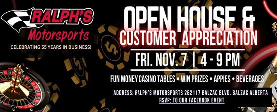 Join us Friday, November 7th, from 4 to 9 PM for Ralph’s Motorsports Fun Money Casino Night & Fall Open House! This event is our way of saying thank you to our customers and community (All ages welcome, everyone's welcome)—come enjoy a fun-filled evening with fun money casino games, food, prizes, and more.